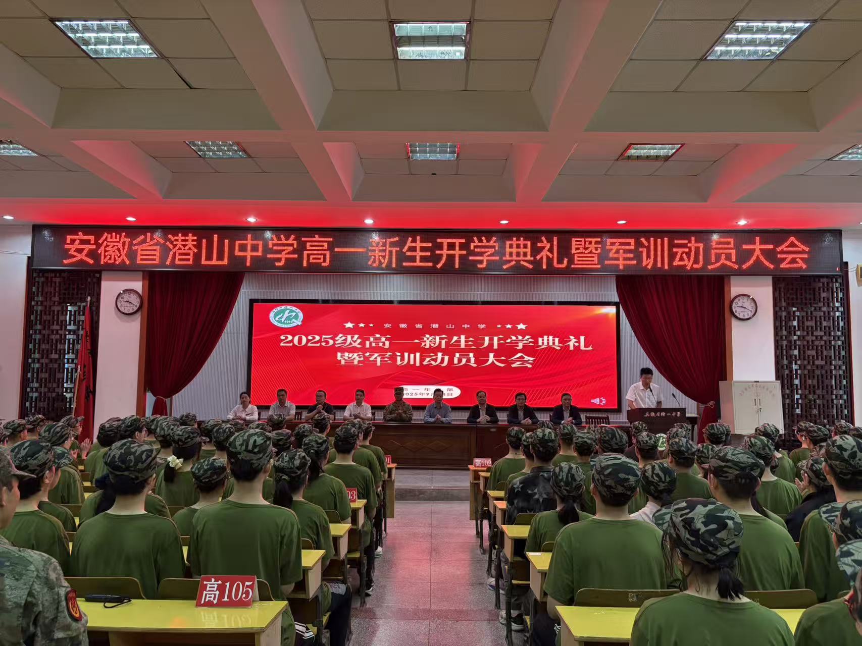 为锤炼学生意志,培养优良作风,9月24日上午9时18分,潜山中学2025级高一新生开学典礼暨军训动员仪式在逸夫楼一楼多媒体报告厅隆重举行,全体新生以饱满的精神状态迎接高中生涯的“第一课”。